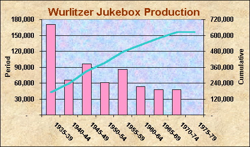 between 1934 - 1974, compared to the 600,000+ for Seeburg and